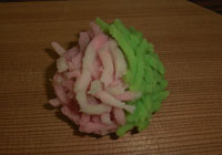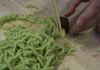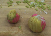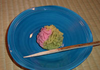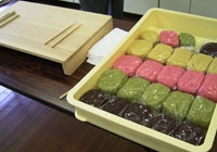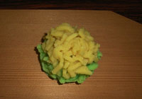 作った菓子に命名。きんとんは二つと同じものは作れない。へたさも味のうち。ただしかわいいものはお茶に似合わない。きんとんは平安時代の女房の衣装文化をくみ、重ねの文化が生きている。そうして、二色、三色と使い分けているのですね。