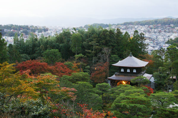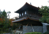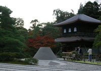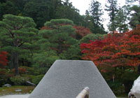 両脇が高い垣根のところを抜け、料金の払い…、銀閣寺です。