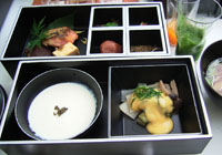 <朝餉のにき菜重>那須高原の旬野菜の煮物各種とおひたし、焼き魚、御用邸献上の原木椎茸、那須御用卵のタマゴ料理、大子町の投入で作った自家製豆腐、こだわりの南高梅の蜂蜜風味低塩熟成梅干し、本日の珍味 <味噌汁、釜炊きご飯><ジョセフィンファームのヨーグルトと旬の果実><コーヒー>