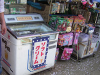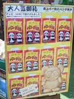 パンダ焼きが人気。型。焼いているところは見られず。駄菓子やさん。アイスクリームケースも懐かしい。文字も。 |