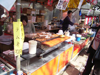 両脇には食べものやさんとテーブル椅子。 |