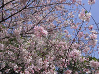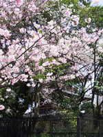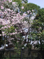 遠くからひときわ目立った八重桜。