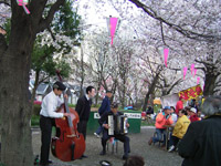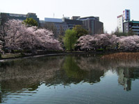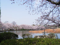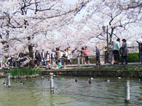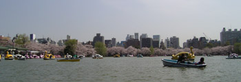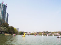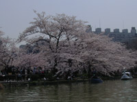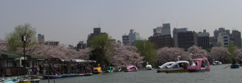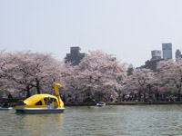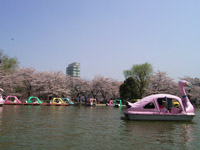 ボート池の周囲には桜の樹が植えられているので、中から花見を楽しめます。たくさんの人が楽しんでいました。