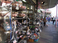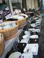 合羽橋にでました。ついでに中を少々探検。什器、お鍋、包丁、喫茶店・料理屋の黒板、…。合い間の通りからスカイツリーが見えて、小さな驚きもいっぱい。 |