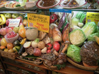 そして!サンプル商品のお店が楽しい。2、3店ほど見せていただきました。精巧の極みがここまで来ているとは…。ご飯の一粒ひとつぶ、食パンの切り口の小さな気泡の穴まで手を抜いていないのです。カレーはカレーの香りもします。それなりにいいお値段します。 |