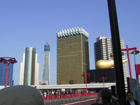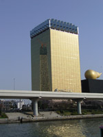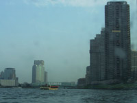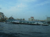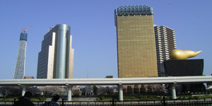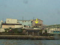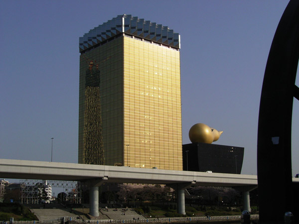 ほんとうは縦にするはずだったのが、奥のビルの日照権の問題で横にせざるをえなくなったそうです。(船のガイドの説明です。)