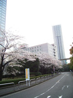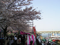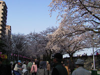 いつも利用している首都高速6号線。こちら側は花見の人ばかり。あちら側にも桜並木があります。