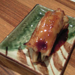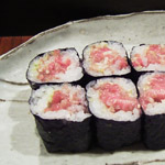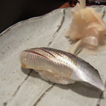 季節の筍木の芽焼き、茶碗蒸し、コハダ、ネギトロ、漬け、穴子。