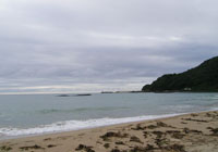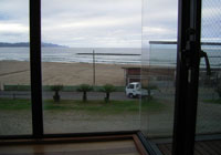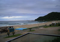 宿に着きました。目の前の海まででてみます。夕日ヶ浦というだけあって、ここに夕日が沈みます。