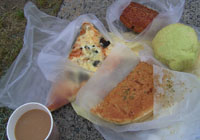上里SAではこんなおいしそうなレストランの写真。朝食用にパンを買う。