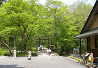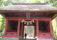 車で中社まで下ります。こちらで、ぐっと観光地っぽくなります。駐車場から入るので、たぶん正門ではない。
