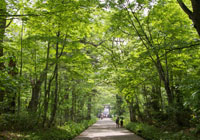 奥社まで片道40分の道のりです。両脇をうっそうと茂ったスギの木の日陰状態で気持ちよいです。が、スキーのストックをもった人がいたり、ご高齢の方々は見かけず。軽い気持ちで臨んだため水分ももたず…。口ゆすぎで生き返るほど、喉が渇いています。