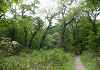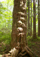 岩から生えている樹も。(左地図は奥社参拝図、右地図は戸隠全図。クリック拡大)