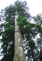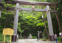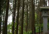 天岩窟にこもった天照大神を、神楽によって再び外にお誘いした智恵の神様・天八意思兼命(あめのやごころおもいかねのみこと)を祀る。三本杉や古木、滝の音が響く境内の厳かな雰囲気が、訪れた人々を厳粛な気持ちにさせる。