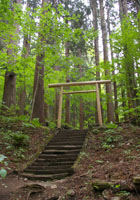 戸隠神社の本社。尼の岩戸を開け戸隠へと投げた天手力雄命(あめのたじからおのみこと)を祀る。嘉祥2年(849)学問行者開山以来、幾度の雪崩にあいつつも霊場は守り続けられた。