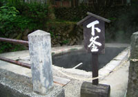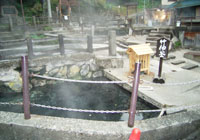 洗濯している人も。よくNHKのニュースでこんな風景を見かけます。野沢温泉のシンボル麻釜(おがま)。以前は大事な生活用品だった麻をここで煮て、皮を剥きやすくしたところから麻釜とあらわすようになったとか。大量の湯を湧出するう源泉で、幾つかの湧出口があります。今でも近在の人が野菜や卵を茹でます。