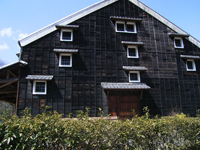 酒林/杉玉が軒先に吊るされる。杉の葉を束ねて玉状にまとめたもの。