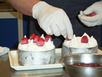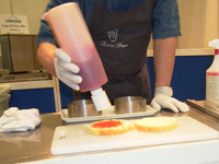 セルクルにアイスクリームを詰める。この大きさが家庭用冷蔵庫に邪魔にならず収納するのにベストとのこと。 |