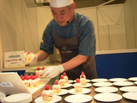 山本シェフは何でも質問どうぞ…と気さくな方。イチゴは畑を借り切って栽培もしたが、今は産地リレーで各地のものを使用。今日のイチゴはトチオトメかな。ベルグの4月ではイチゴはオゾン洗浄しているとのこと。先日失敗したチーズケーキのアドバイスをいただく(無理やり…)。