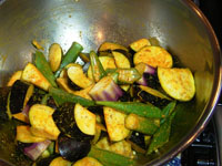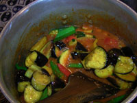 こうやって、教えていただくと、インドカレー調理も敷居が低くなります。トマトスパイス煮ですが、夏野菜カレーです。日本のカレーは煮込んだほうがおいしいけれど、インドのカレーは即席がおいしいです。
