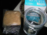 豚バラ塩漬け、冷凍豆腐、鮭味噌漬け焼、黒米梅にぎり、大豆おにぎり
