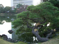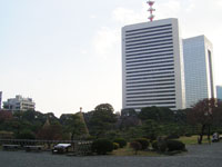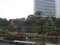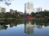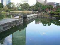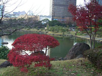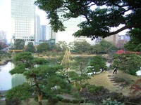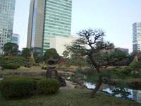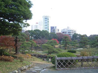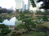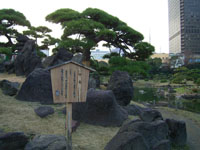 その後、数氏を経、幕末には紀州徳川家の芝御屋敷となる。明治4(1871)年に有栖川宮家のものになり、同8(1875)年に宮内庁が買い上げ、翌年に芝離宮となる。大正13(1924)年1月、昭和天皇の御成婚記念として東京市(都)に下賜され、庭園の復旧と整備を施し、4月に一般公開される。昭和54年(1979)年6月に国の名勝に指定される。 |