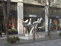 | ブリックスクエア内に美術館。フリースペースに岩崎彌太郎、丸の内の歴史紹介。2010年「龍馬伝」で副主人公として香川照之が演じていました。江戸城跡が皇居となり、そこから海までの土地が岩崎彌太郎に払い下げられたとのこと。お屋敷の模型は宮殿のよう。ジョサイア・コンドル(英)によって設計されました。現在は東京都の管理に。1999年重要文化財に指定されています。