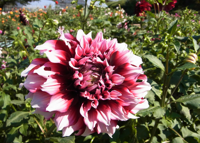 10月連休の最終日、町田ダリア園へ。社会福祉法人とのこと。開園期間 6月20日〜11月3日とダリアは長い間咲き続けるらしい。霜が降りるようになるとおしまい。ダリアが植物園の一角にあるのはよく見かけますが、ダリア単独というのは珍しい。約500品種、約4,000株のダリアが咲きほこります。