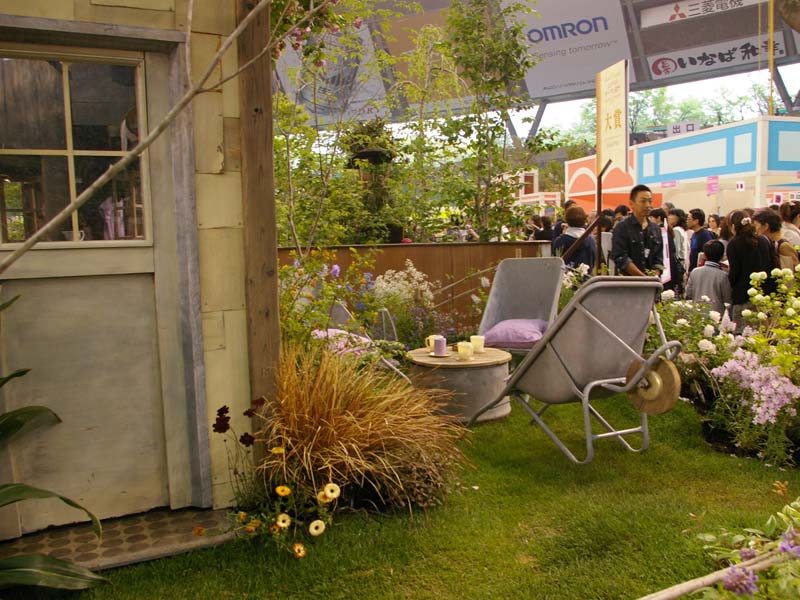 北海道のブースでは実物大の紫竹おばあちゃんパネルのお出迎え。ガーデンを期待していくとがっくりします。ほぼ事務所状態です。