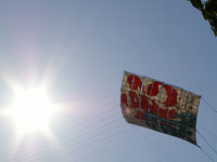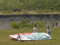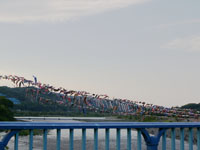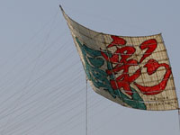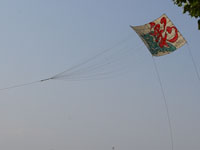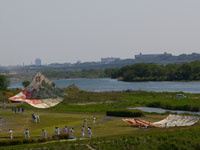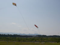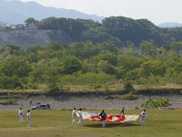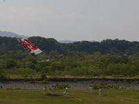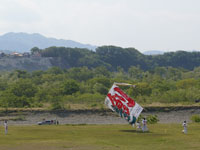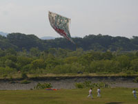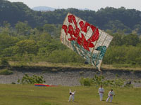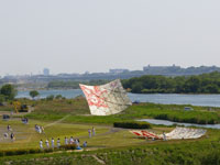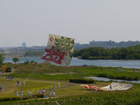 上流に移動。75畳の大凧が昨日から数えて7回目にして無事揚がる。滞空時間15分弱。