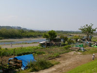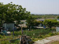 河川敷、たぶん不法占拠で畑を作っている