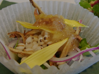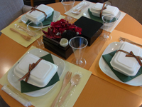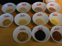 雑穀クリエーター田中雅子さんが、同じく大阪梶川愛さん、帯広栂安信子さんの雑穀クリエーター2人を迎えての料理講習会です。3倍おもしろおいしそうです。 |