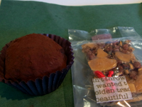 キノアとジャスミン茶のゼリー、五穀フロランタン、発芽大麦とクランベリーのチョコレートボール。 by Kajikawa