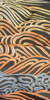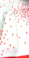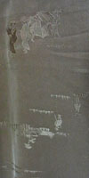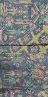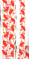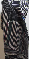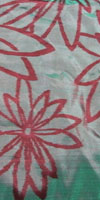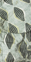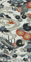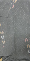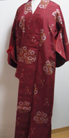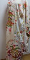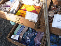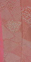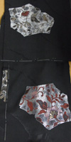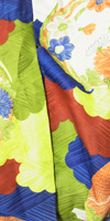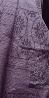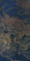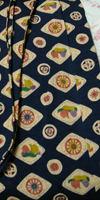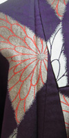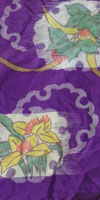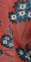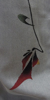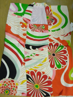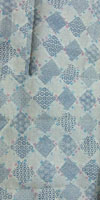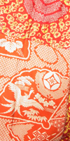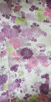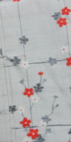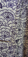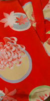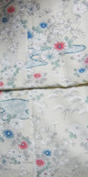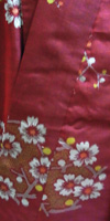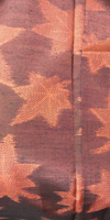 もみじの柄のものは紬。 右の生地は、37cm幅、その半分の幅のものをつないであり、作ったものをほどいてつなげてあります。