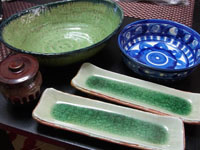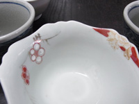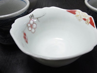 現代物香蘭社魚の赤絵、奇抜な色の器を見ましたが、あきらめる。
