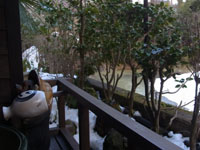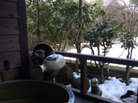 ということで、先日の大雪の時の話を伺いました。大雪の土曜は旅館のほうからお客様に宿泊のお断りをさせていただいたとのこと。また前日からお泊りのお客様にはご希望があればそのままお泊りしていただいたとのこと。日曜は、予てからご予約のお客様、また伊勢に向かうツアーの方々が伊勢には行けないと判断し、急遽、元湯に宿泊し、館内全館満室とのことでした。