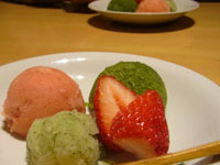 デザートは大葉、イチゴ、抹茶のソルベ。