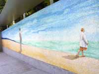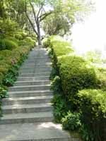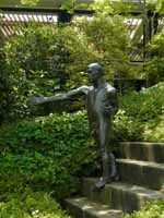 塀には何となく影がついています。彼の視線の先は…睡蓮の池のほうでしょうか。