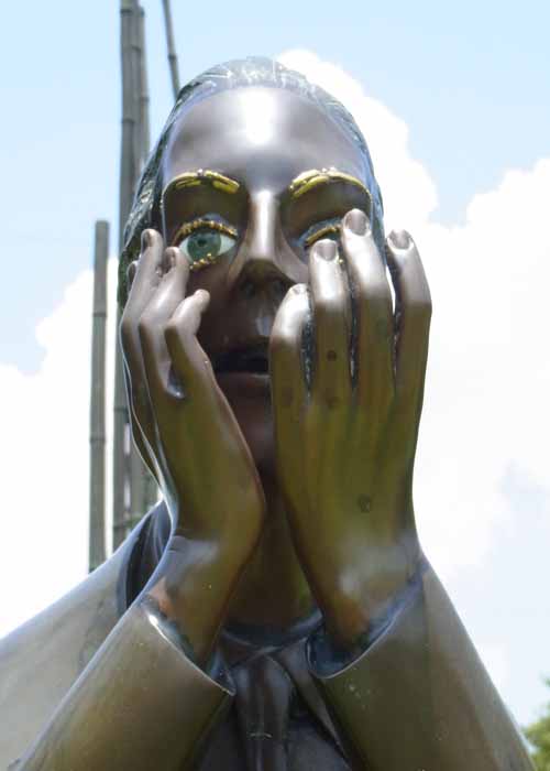 さらにのっぺらぼうの像。顔に手をやる女1994白大理石
