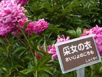 今日咲いている花の説明、また入り口には案内役の方々もいます。