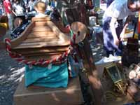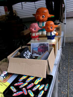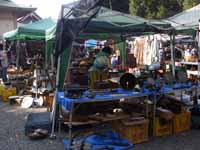 9月、雨。雨の日に行くのははじめて。お店は品物が濡れないように、さらにはお客さんも濡れないようにシートの屋根が張られていました。いつもの着物のかわいい声のオバチャンの店は地面に着物を並べているし屋根もないのでお休みです。