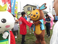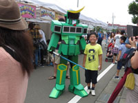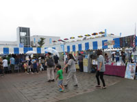 まつりのメイン会場、青いものを着ているとクリアファイルかハガキがもらえる |