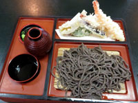 昼ごはんは商店街にある「ちゃんこ荻乃井」で名物の黒い「のりうどん」 |