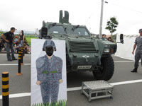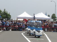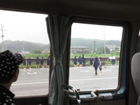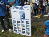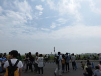 本来ならここでブルーインパルスショー。1時30分が中止になり、2時30分に飛ぶかも…。大勢の人が期待して待っています。 |
