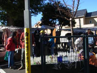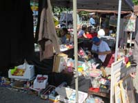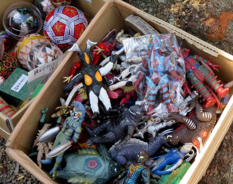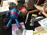 暑い中、着物探します。銘仙3点。入り口近くの店で購入。日なたのため店主避難中、買い上げ終了と見ると寄ってきた。お疲れさま。
