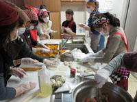 参加者好き勝手に仕事を分担し調理中。