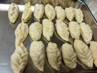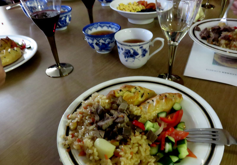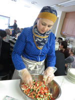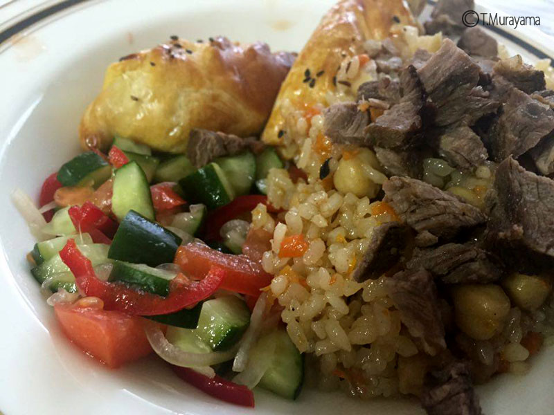 1-ウズベク料理パロフ(ピラフ)、ソムサ(カボチャパイ)、サラダの調理