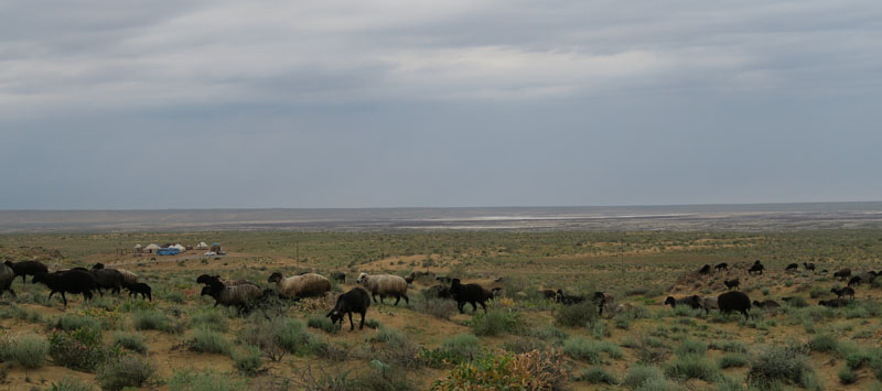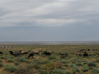 そしてアラル海、左の地図と上の地図では様相が違います。農業用水としてどんどん取水していったため、現状をとどめることができずに干上がり、左の地図のように西側部分だけが残るのみ。旅程中のどこかの博物館でこの話を聞きました。