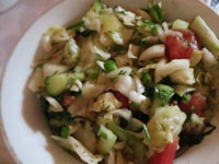 特別に注文してくれたディルを練り込んだパスタがおいしい。