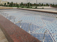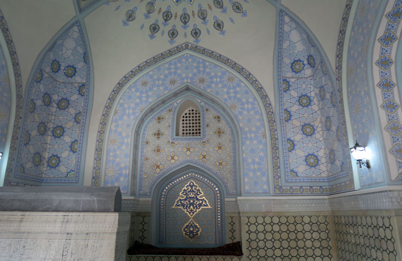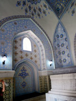 ”白い宮殿”という意味のアク・サライは実際は青と金色のタイル装飾の宮殿。